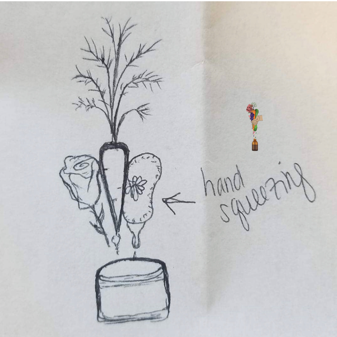 Zoom in on the ‘display’ box to faintly see the exact wording (scents is misspelled); and you can see the flowers in the bottles.